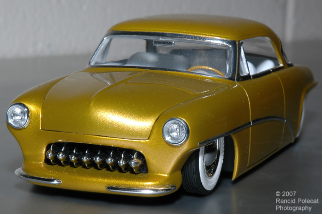An extra toothy 1953 Chevy grille acts as centerpiece of the recontoured front end.