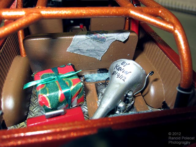 red Coke can made from styrene rod in the console cup