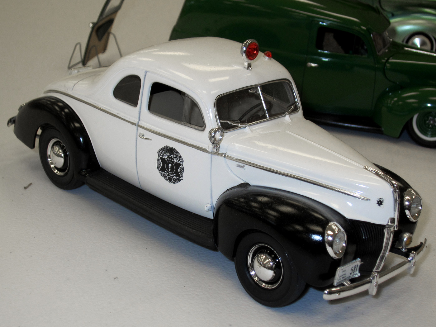 Tom Sheehy set out a pair of police cars: a